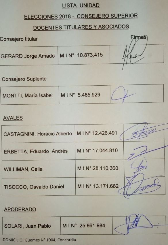 Listas de Consejeros Directivos y del Consejo Superior. Las que