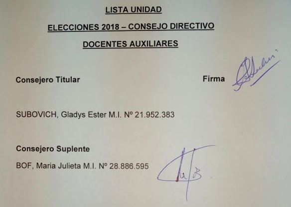 Se informa que la Junta Electoral en el día de hoy dio ingreso a las