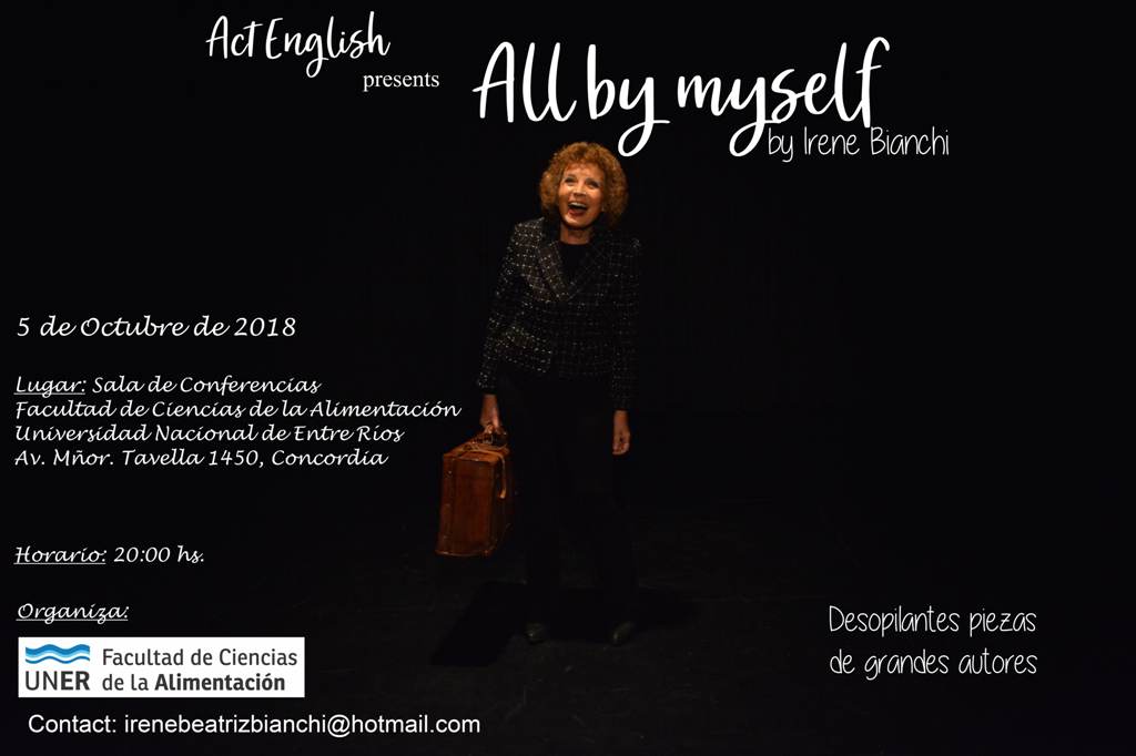 El espectáculo unipersonal en inglés _"ALL BY MYSELF"_ incluye poesías y