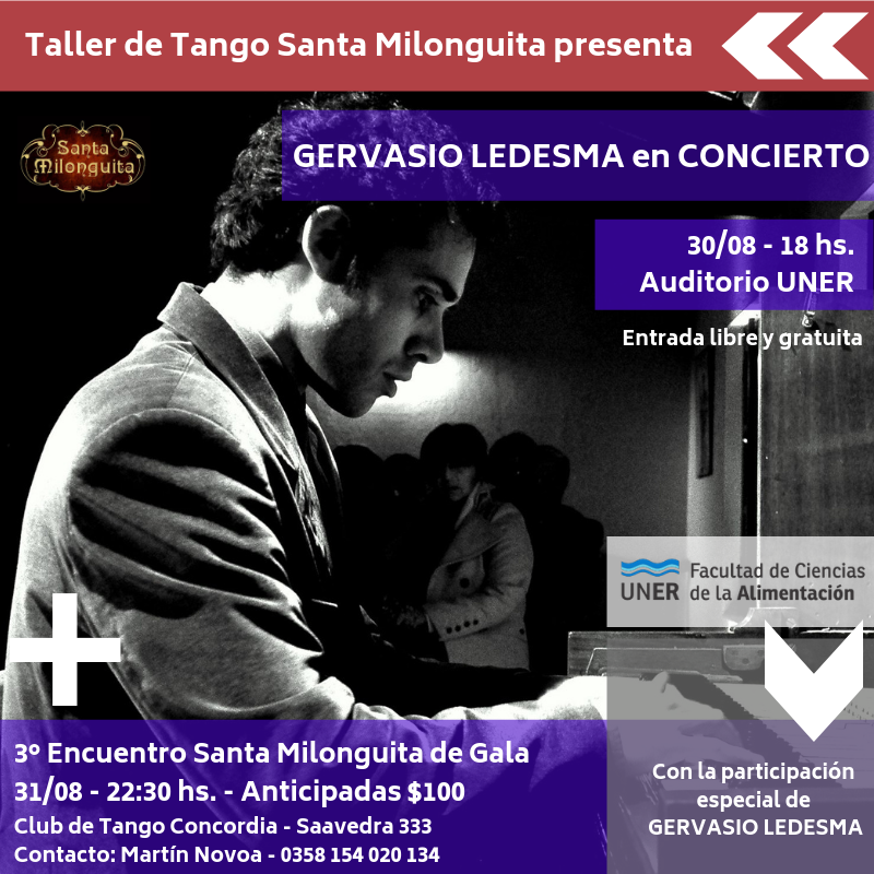 Además, Ledesma será artista invitado de la 3° SANTA MILONGUITA DE GALA