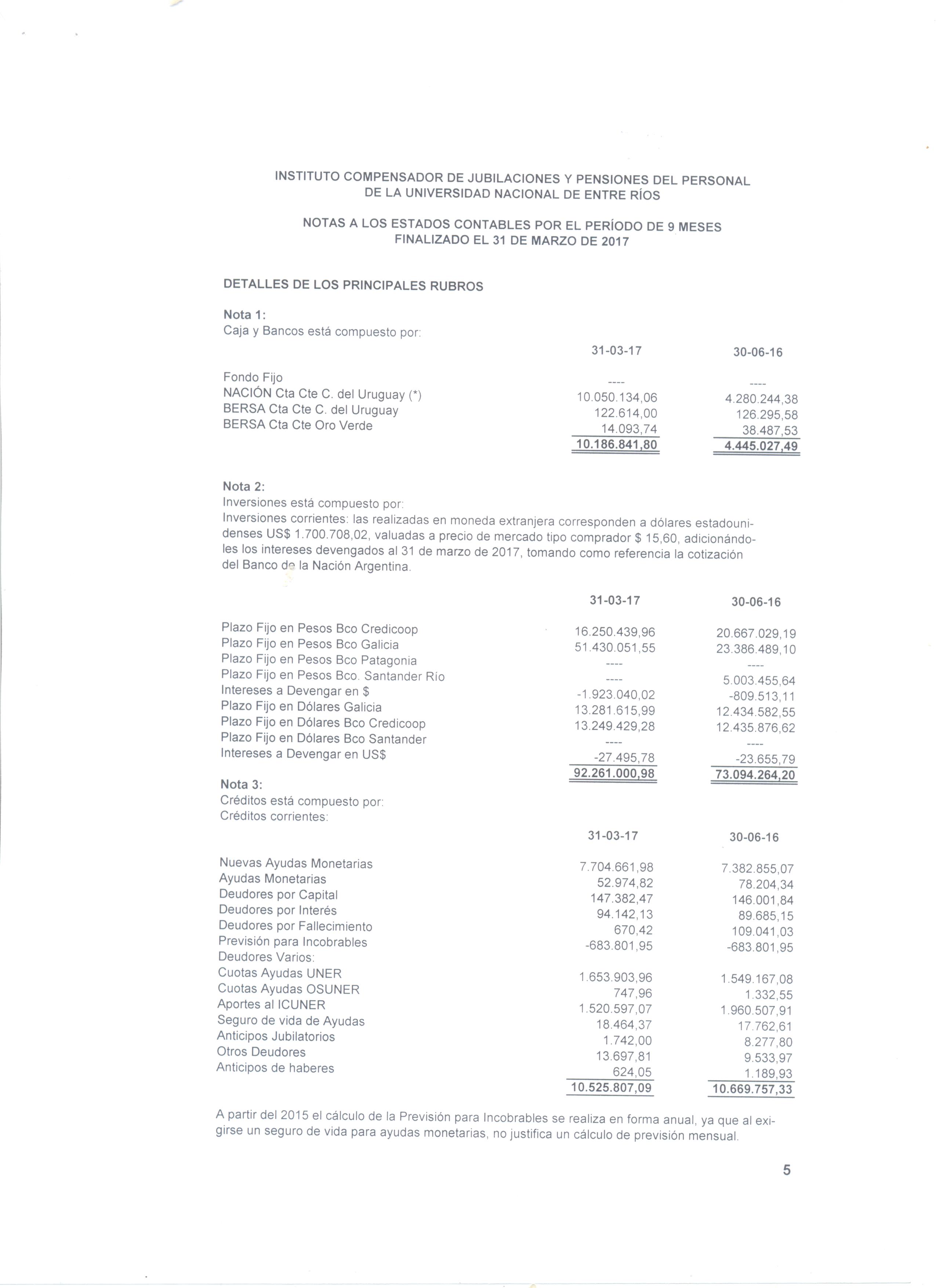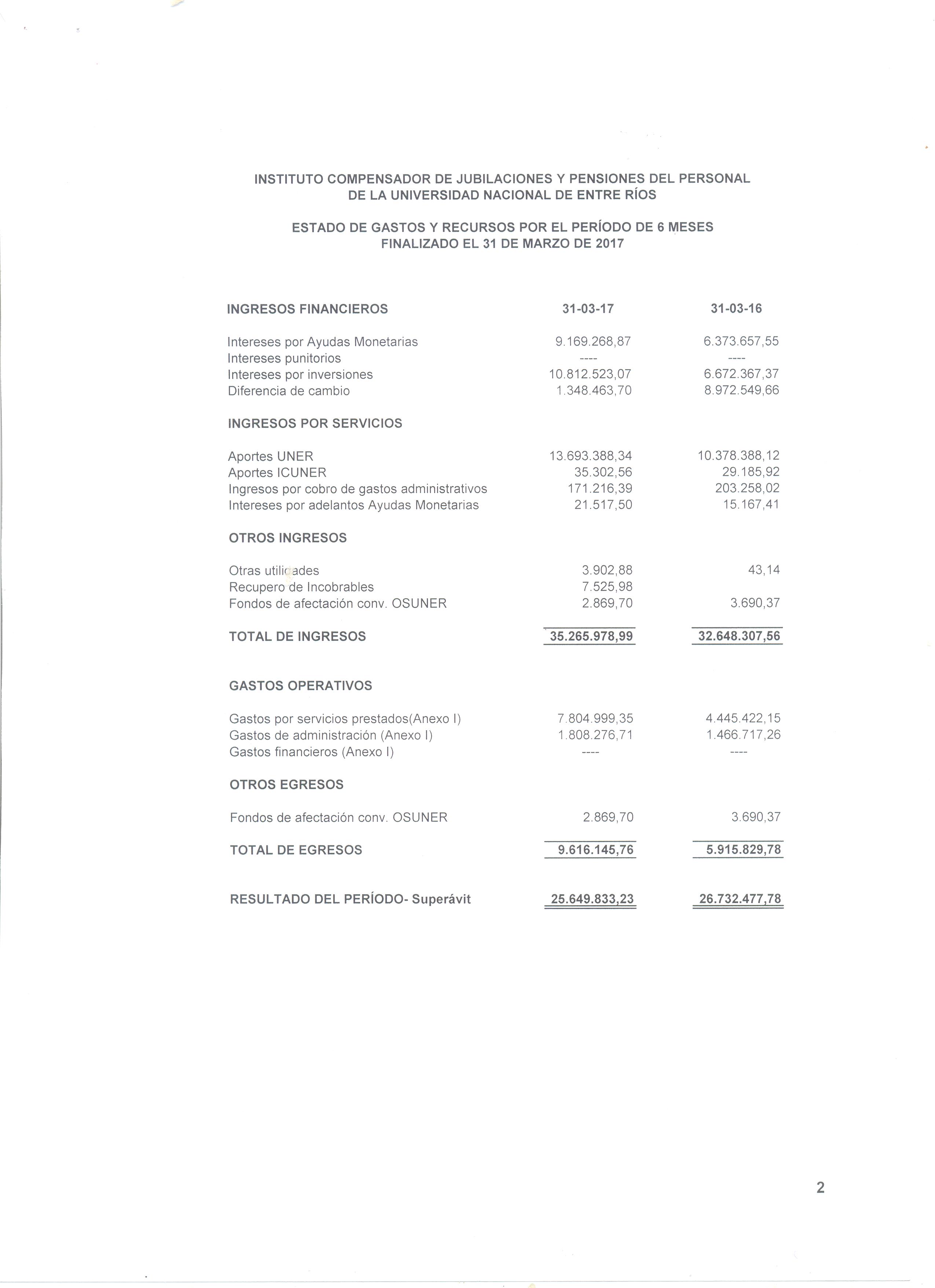 5ª.- Cuenta Operativa del ICUNER: En adjunto se encuentran los informes
