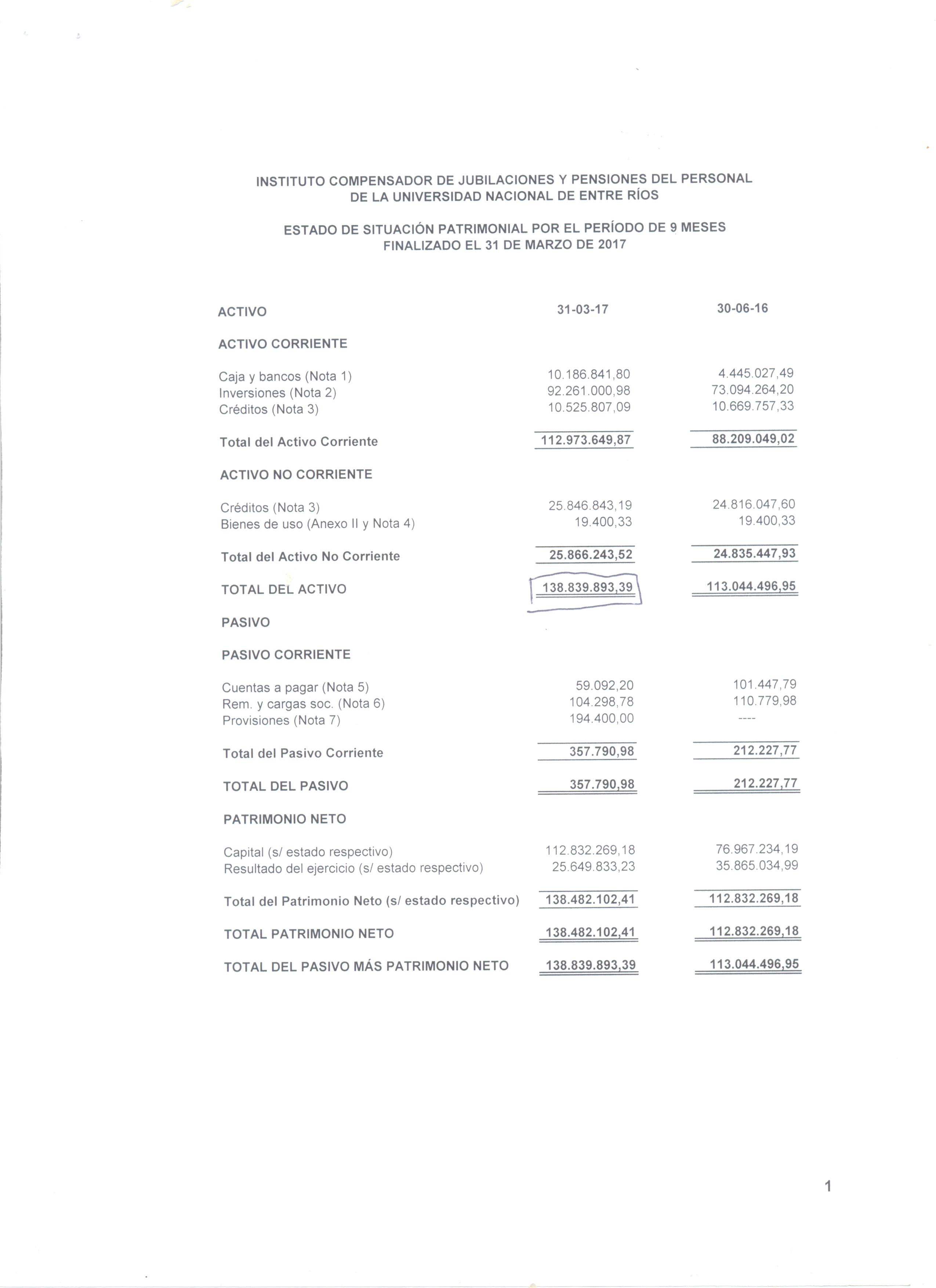 3º.- Informe Económico financiero: a) Balance al 31/03/17;0 b) Depósitos