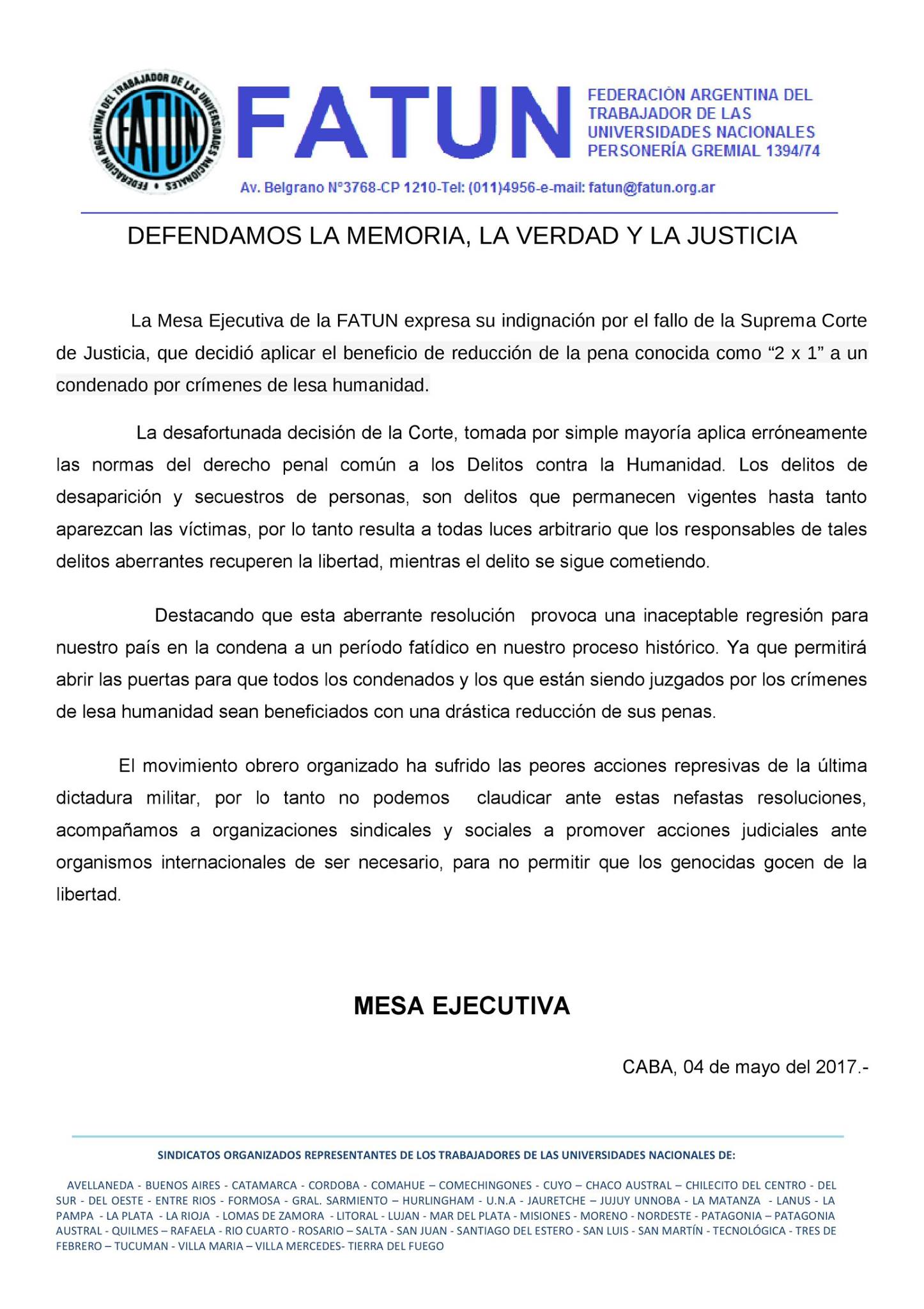 > Compartimos y adherimos al comunicado de la Mesa Ejecutiva de FATUN