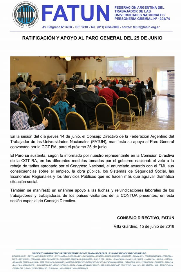 Compartimos el comunicado de FATUN referido al