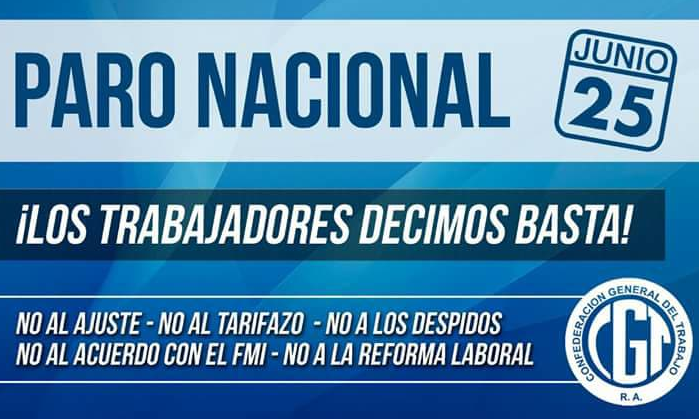 PARO SIN ASISTENCIA A LOS LUGARES DE TRABAJO DEL LUNES 25 DE JUNIO.