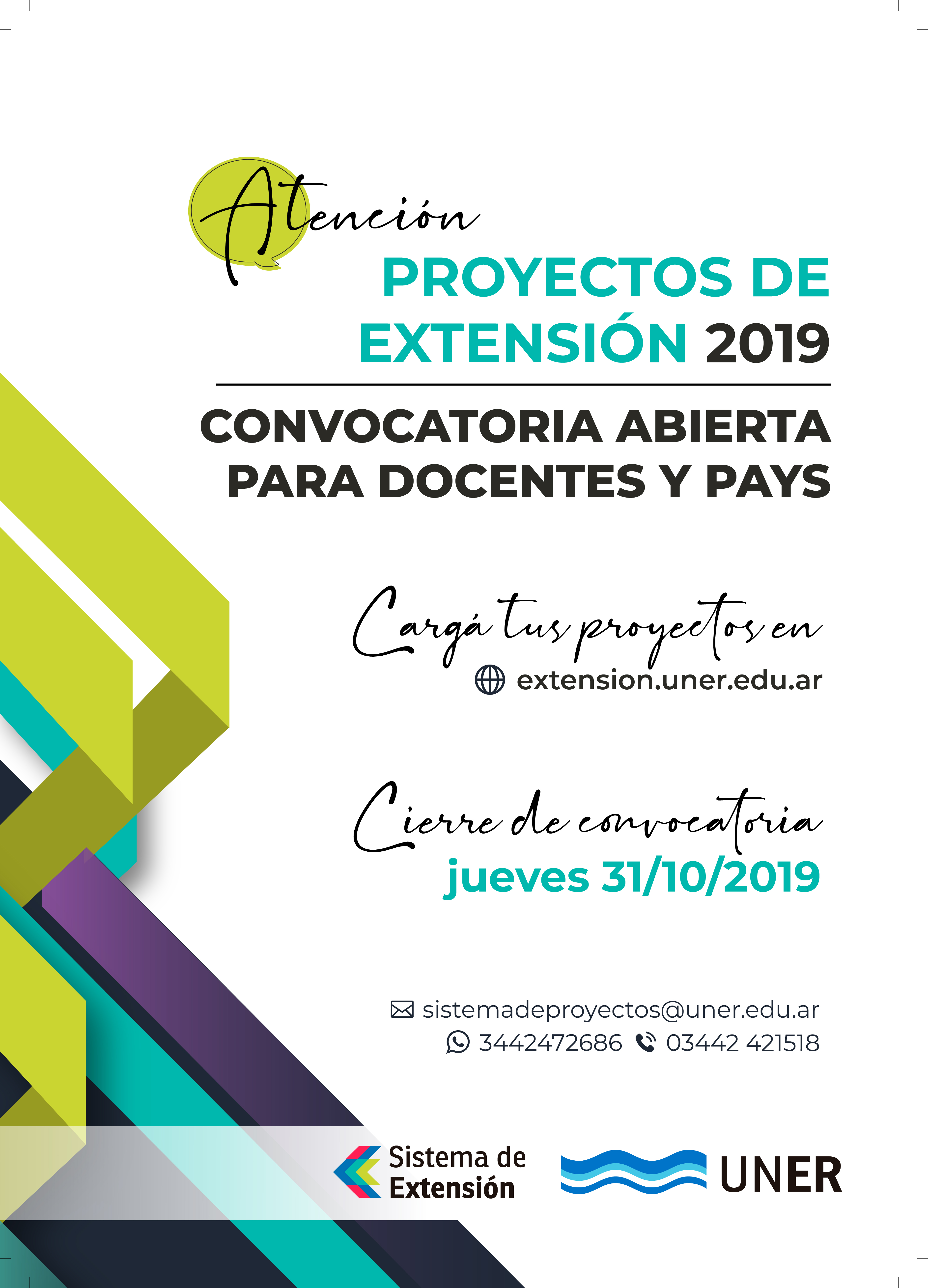 convocatoria a PROYECTOS DE EXTENSIÓN dirigidos por DOCENTES y PAYS.