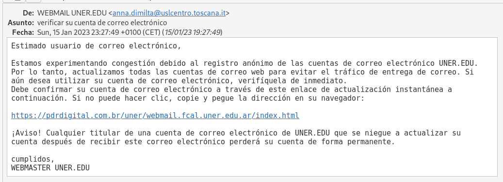 UNER.EDU <http://UNER.EDU>* con asunto *verificar su cuenta de correo*